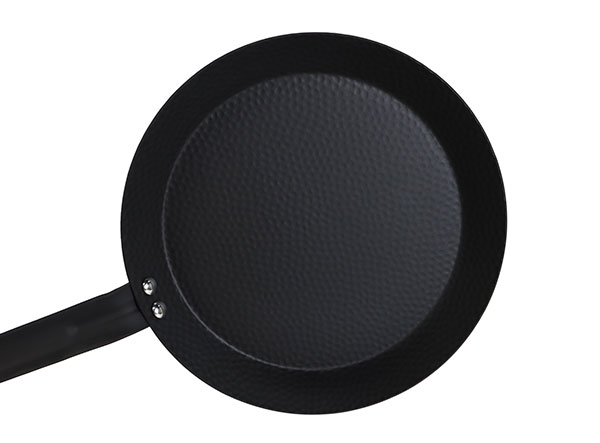 The unique feature of this frying pan is its hammered finish. Every groove and dimple reflects the careful carving of details. The dents reduce the contact area between food and oil, saving oil and making cooking healthier.