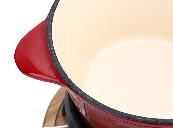 This Fondue Pan is enamelled, has a non—stick coating, the color can be customized by Pantone code or template.