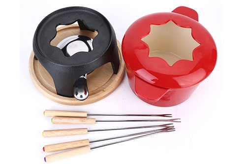 Convenience Included: Fonduer maker has an Inside and out enamel surface for easy cleaning of sticky cheese fondue and chocolate fondue with no pre-seasoning required.