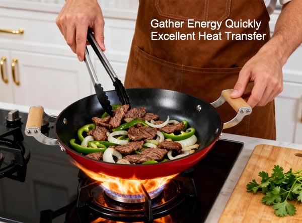 Weight & Construction: Compared to traditional cast iron pans, it is 30% to 50% lighter. The lightweight design balances thinner sidewalls with a thick base, making it easier to handle without compromising heat retention and cooking performance. It is ideal for prolonged, high-intensity commercial cooking scenarios.