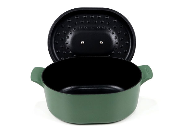 The newly developed droplet structure on the inside of the Dutch oven lid ensures that condensed liquid is evenly distributed over the food and does not flow to the edge of the lid. This protects food from drying out and losing taste. Vitamins and nutrients are preserved.