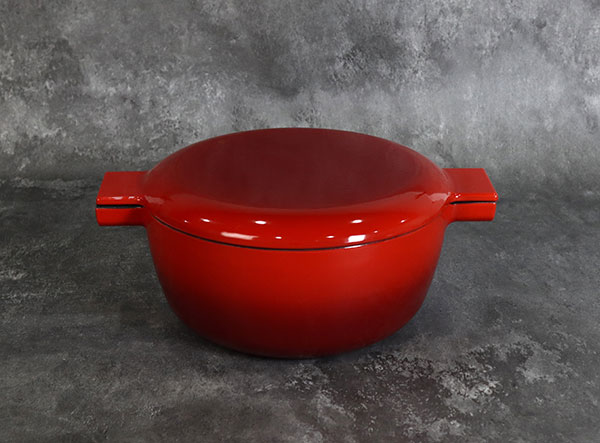 Its two-handle design can easily move in your kitchen. Reflects excellent heat distribution and retention, enabling consistent and even cooking.